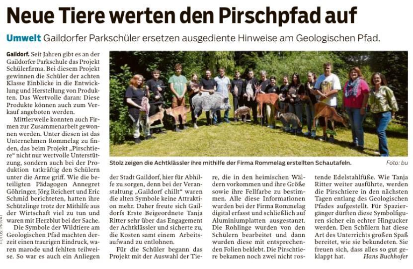 Unsere Schülerfirma Parkis übergeben die produzierten Waldtiere an die Stadt